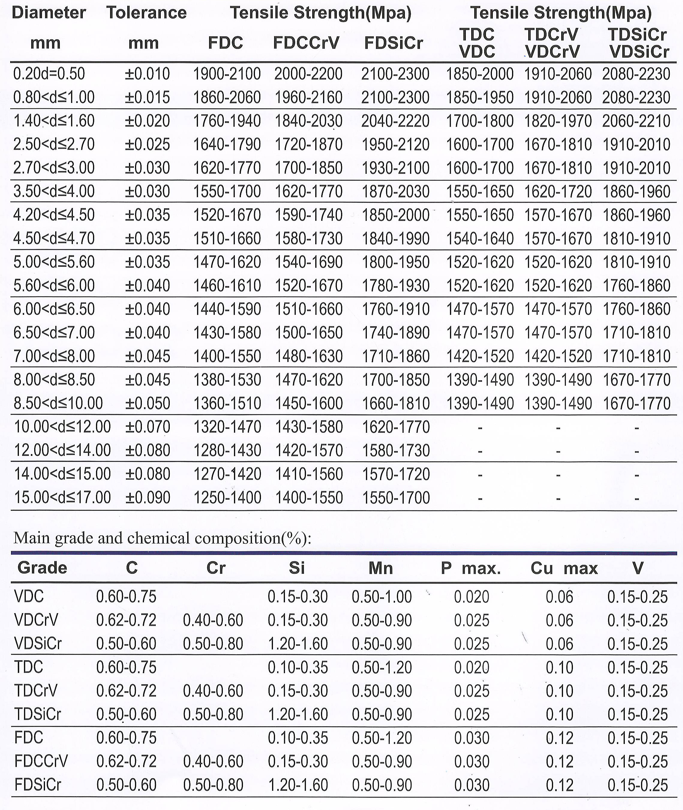 QUALITA’ Acciaio duro temperato- EN 10270-2