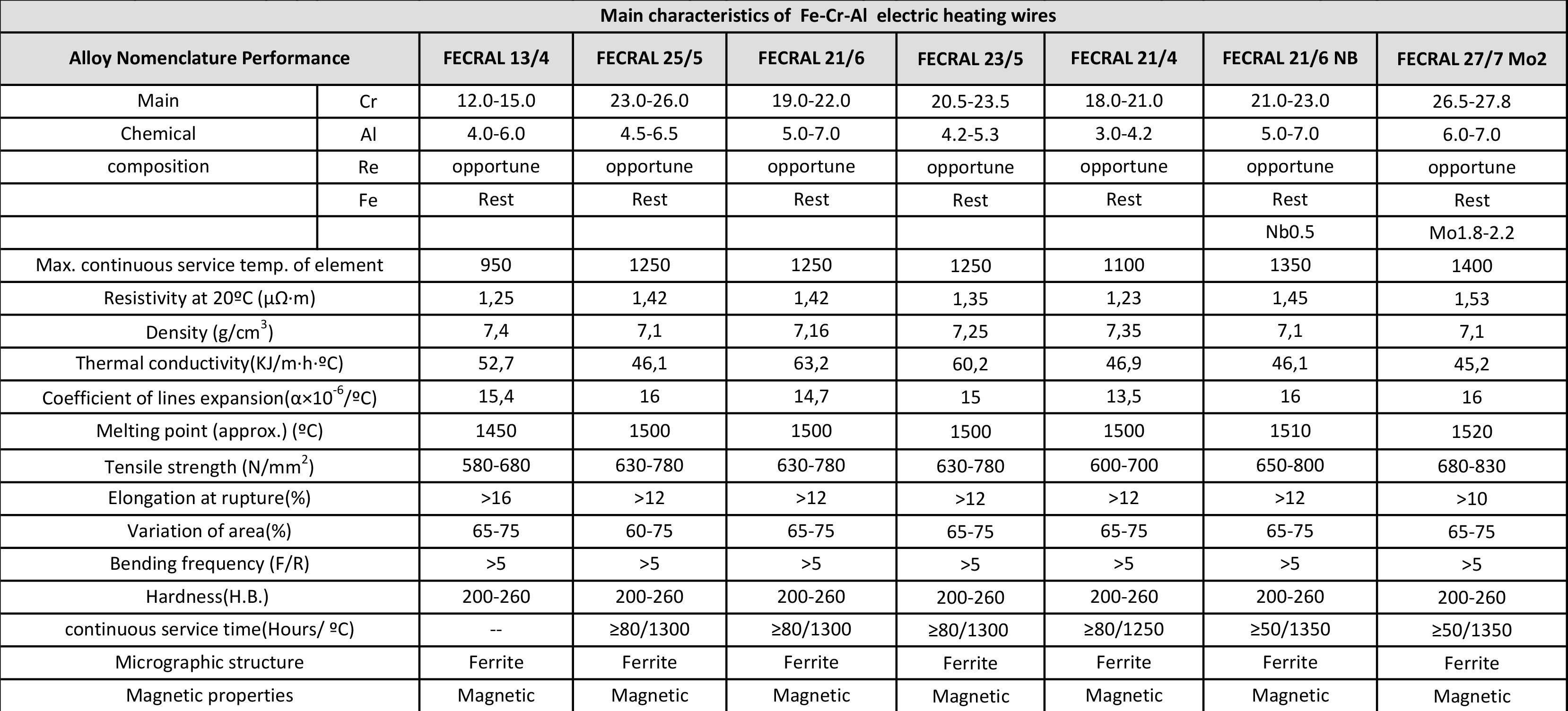 Other Name: Kanthal D, Alloy 815, Alchrome DK, Alferon 901, Resistohm 135,Aluchrom 5, Stablohm 812; Kanthal AF, Resistohm Y, Aluchrom Y, Alloy 837; KanthalA1, Kanthal, Alloy 875, Resistohm 145, Aluchrom 0, Alchrome 875, MWS-875, Stablohm 875